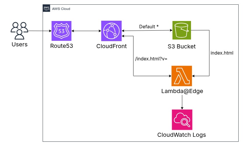 • Variante 3: AWS CloudFront mit Lambda@Edge, wo ich den Request/Response modifziere - ich "injiziere" meinen Code über eine Lambda-Function in den HTML-Body ein. Diese Variante ist sehr einfach, da ich die HTML-Website lokal erstellen kann und einfach über CloudFront verteile. Der dynamische Part wird über eine eigene Lambda-Function geregelt, diese muss ich auch selten ändern (die Credentials stehen fest) und der Code ist dafür auch sehr simpel.